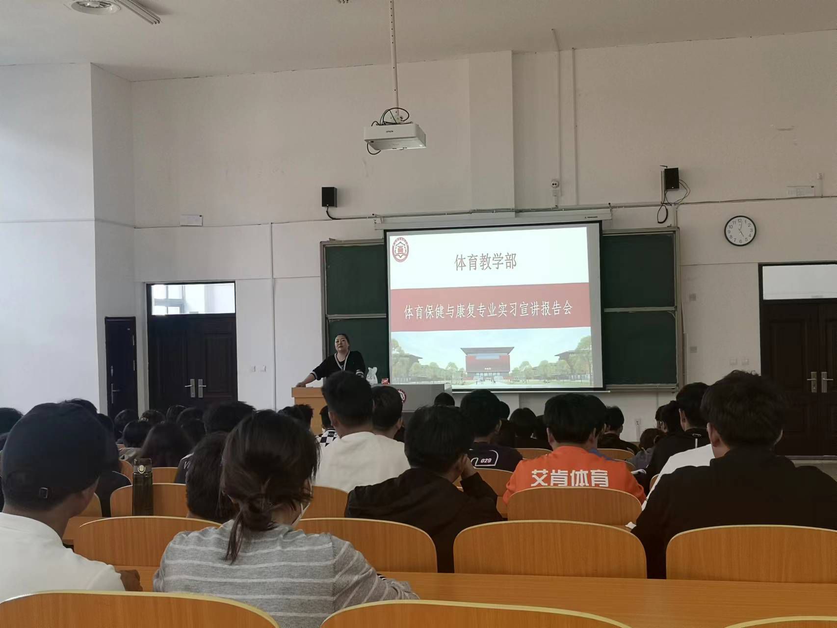为推进体育保健与康复专业学生优质实习,拓宽学生就业渠道,搭建毕业生和用人单位交流平台,加强校企联系,促进学生和用人单位的双向选择。体育教学部为本专业学生先后举行了2场专题实习宣讲会。