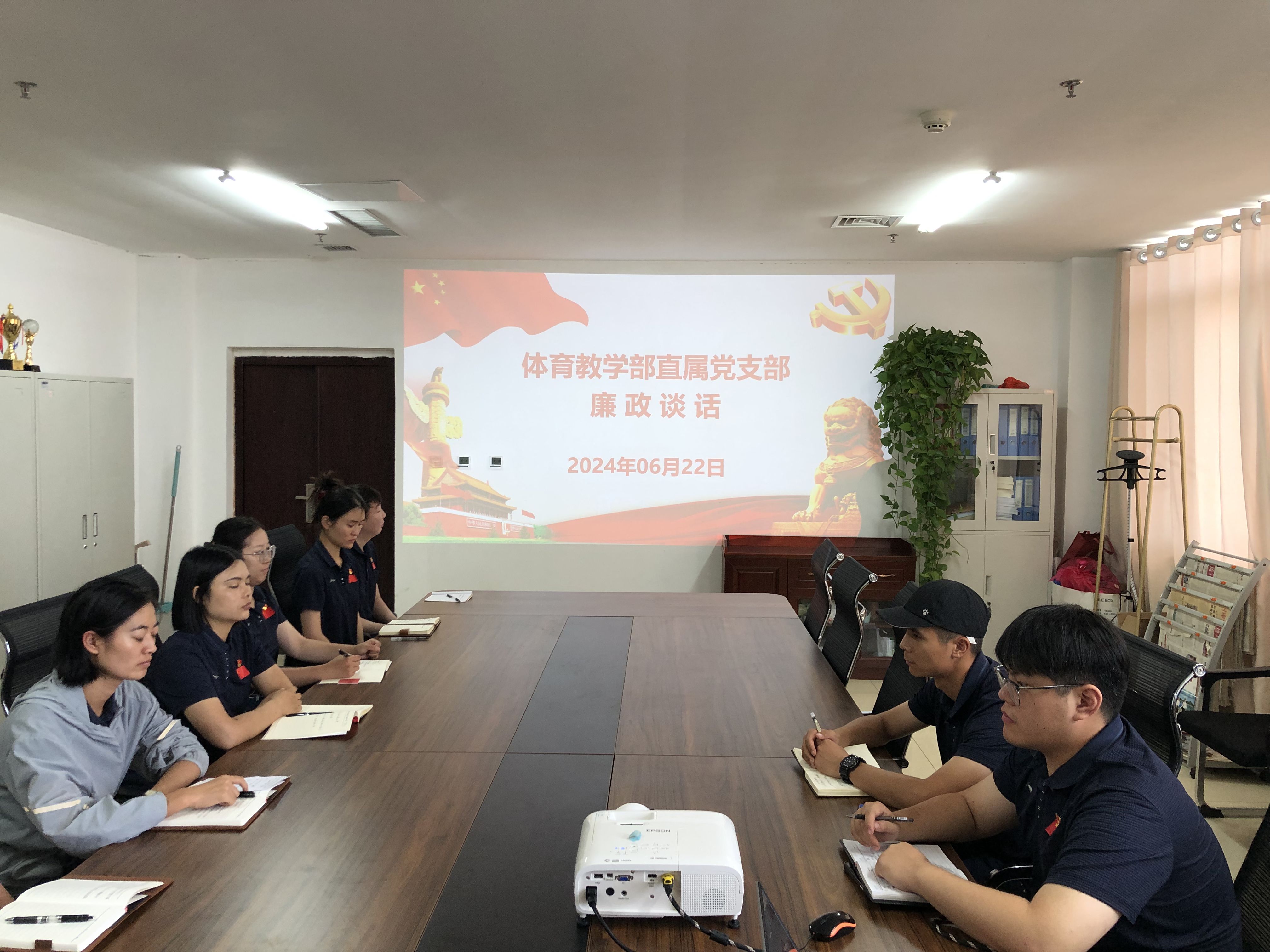 为深入推进学校全面从严治党和党风廉政建设工作,进一步提高党员干部纪律意识、规矩意识和廉洁意识,6月22日,体育教学部直属党支部组织党员干部、校运动队教练等人员廉政谈话。谈话由王莉书记主持。