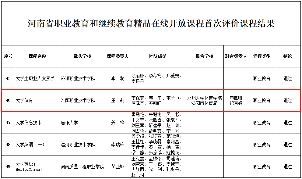 我校体育教学部教学团队申报的《大学体育》课程顺利通过河南省职业教育精品在线开放课程首次评价。