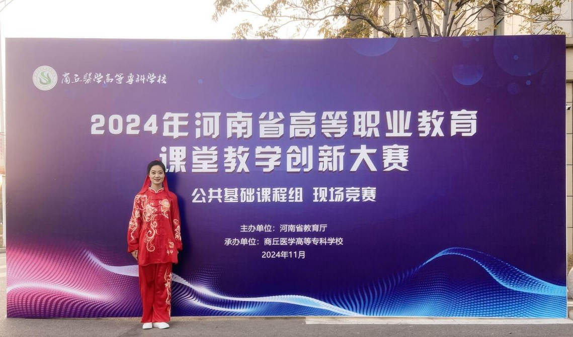 2024年11月26日至28日,由河南省教育厅主办的2024年河南省高等职业教育课堂教学创新大赛(公共基础课程组)在商丘医学高等专科学校举行,体育教学部教师王晓蓉荣获一等奖。