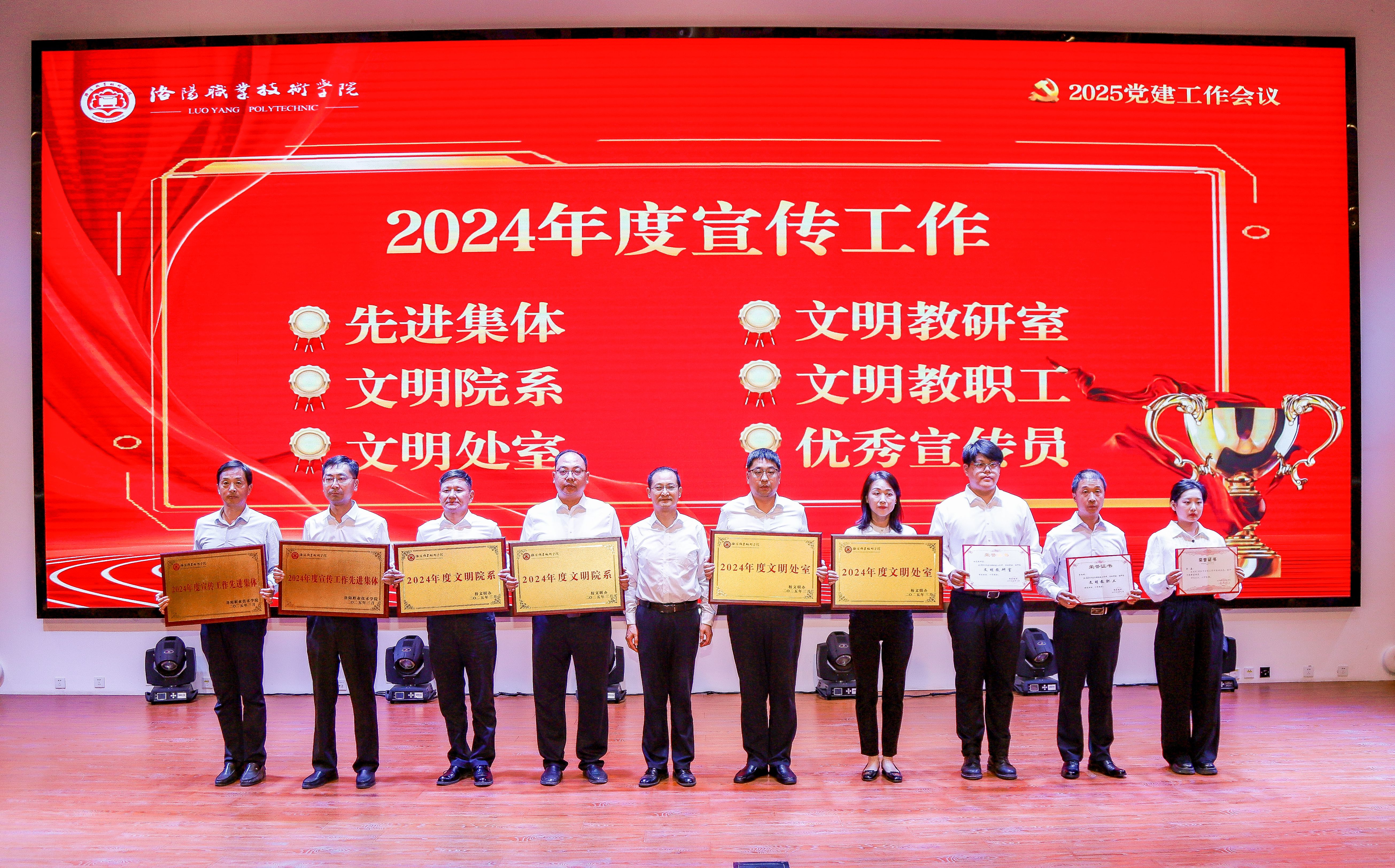 在获奖代表上台领奖后,党委书记赵健同志作了重要讲话并强调,2025年是贯彻落实教育强国建设规划纲要的开局之年,也是“十四五”规划收官之年和“十五五”谋篇布局之年,更是学校做好巡察整改落实工作、实施进一步全面深化改革的关键之年。希望广大党员干部既要统筹好党建与业务、改革与稳定的关系,又要处理好“谋长远”与“治当下”、“抓整改”与“促发展”的关系,以更加务实有力的举措打造好“一融双高”党建新格局,以更加奋发有为的姿态回答好“教育强国,洛职何为”。