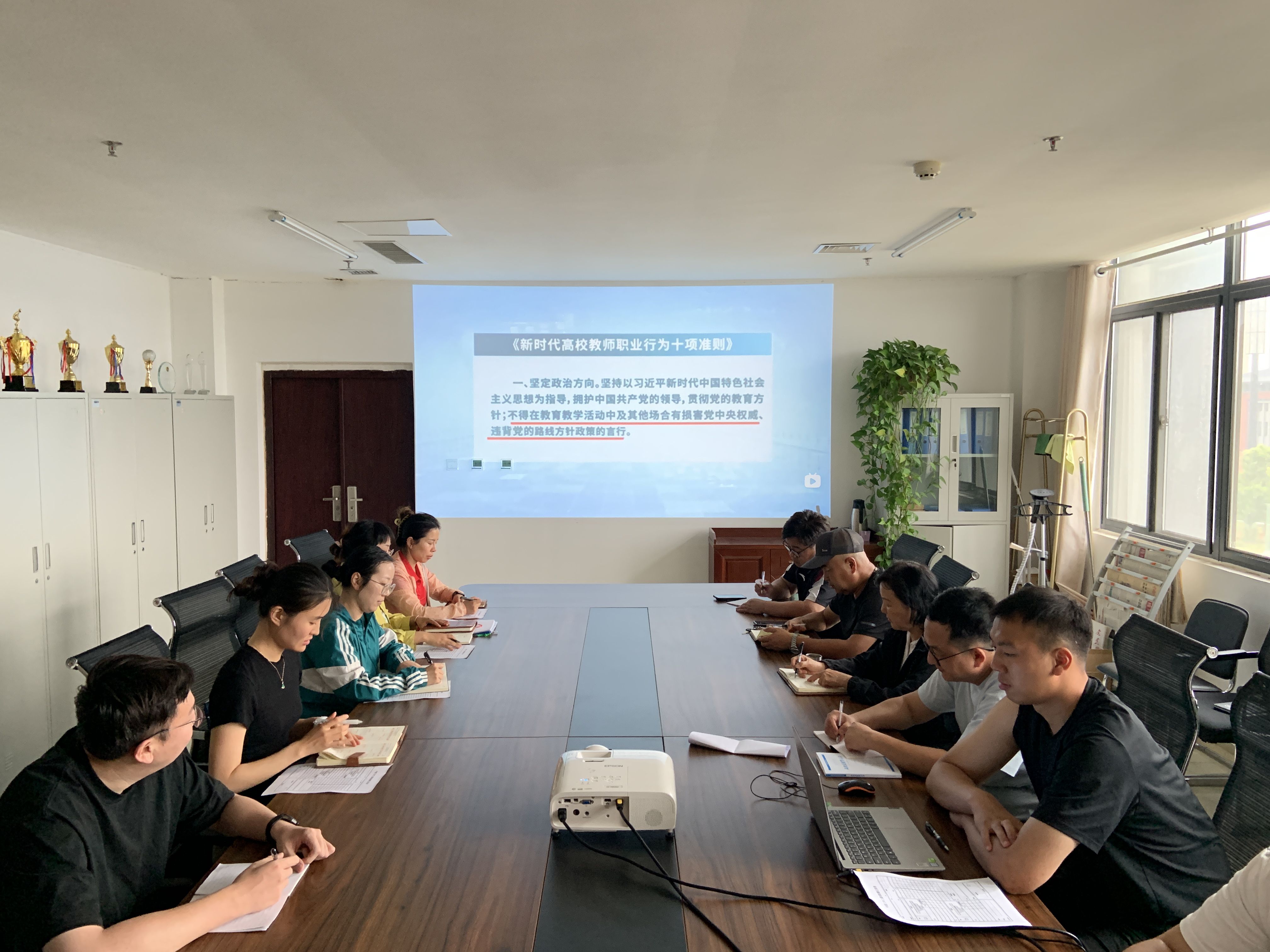 为全面贯彻落实党的教育方针,积极响应新时代教育高质量发展的战略要求,围绕立德树人根本任务,弘扬教育家精神,根据《中共河南省委教育工作委员会河南省教育厅关于在全省教育系统开展“铸魂强师,奋进有我”师德主题教育活动的通知》和《洛阳职业技术学院党委教师工作部关于开展2025年师德师风主题教育活动的实施方案》的要求,5月22日,体育教学部组织全体教师在教研室召开了师德师风主题教育活动动员大会,会议由王莉主任主持。