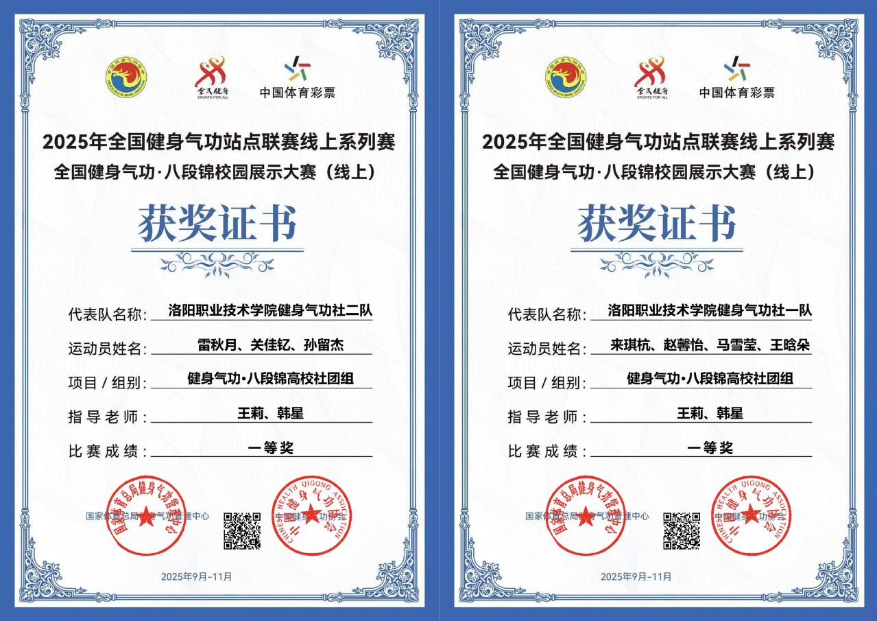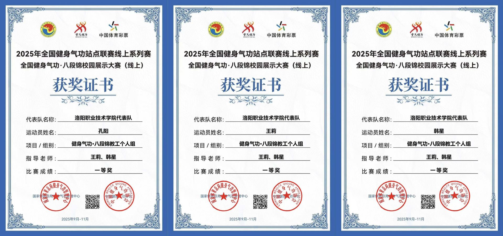 2025年11月举办的“2025 全国健身气功・八段锦校园展示大赛(线上)” 圆满落幕。我校师生凭借深厚的传统文化素养与扎实的技能功底,在全国性舞台上崭露头角,一举斩获多项大奖。