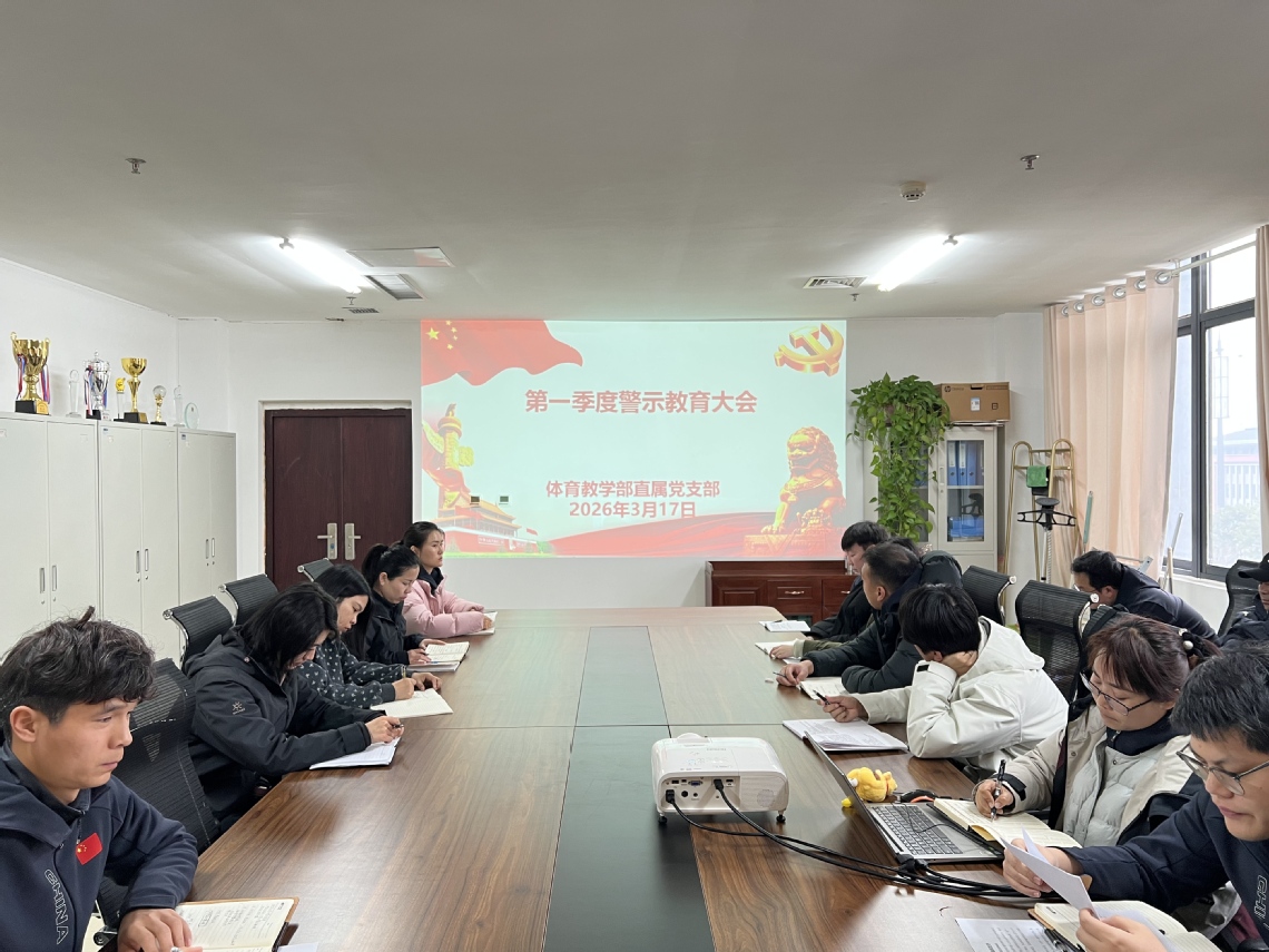 为深入学习贯彻习近平总书记关于全面从严治党、党风廉政建设树立和践行正确政绩观的重要论述,强化党员干部教育管理监督,筑牢拒腐防变思想防线,按照校纪委工作要求,3月17日,体育教学部直属党支部组织全体教师在部门教研室召开第一季度警示教育大会,会议由支部书记王莉主持。